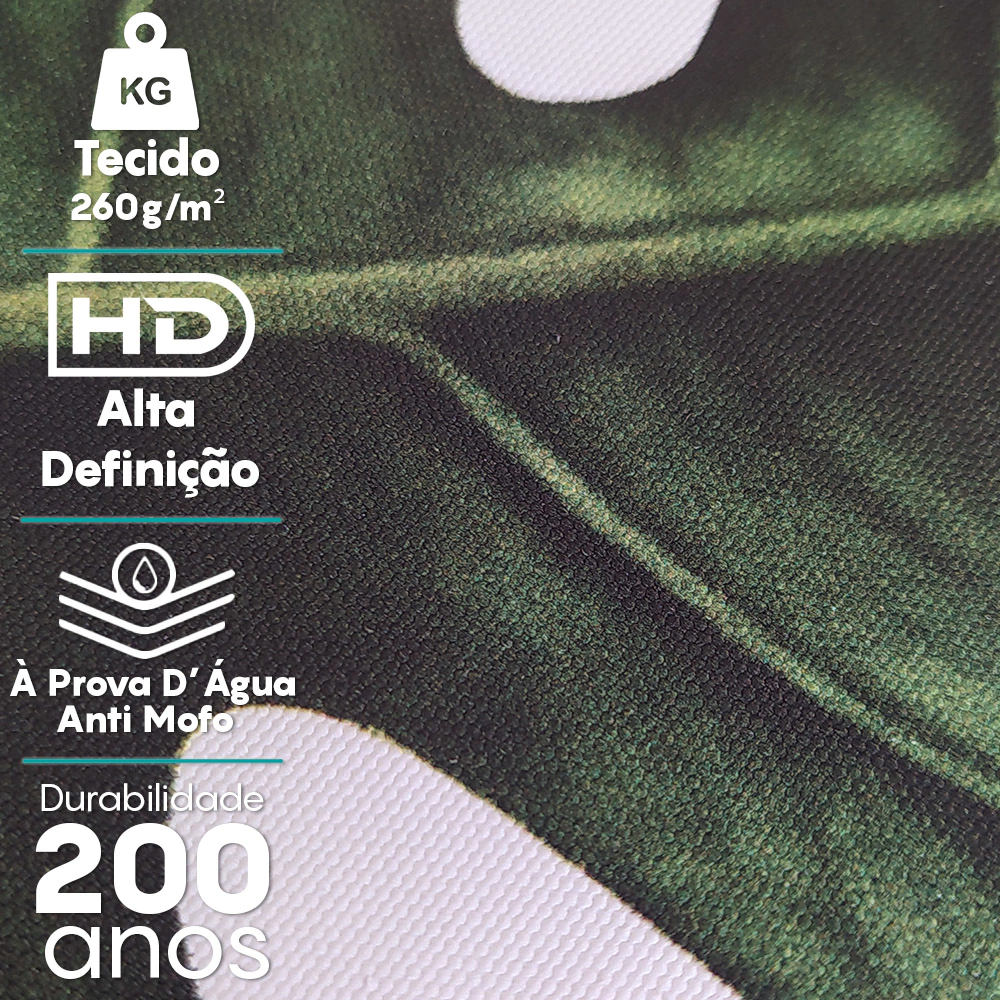 A impressão é realizada através de estamparia digital de última geração com alta definição sobre um tecido tratado, o que garante menos reflexo da luminosidade, proporcionando maior realismo das imagens.