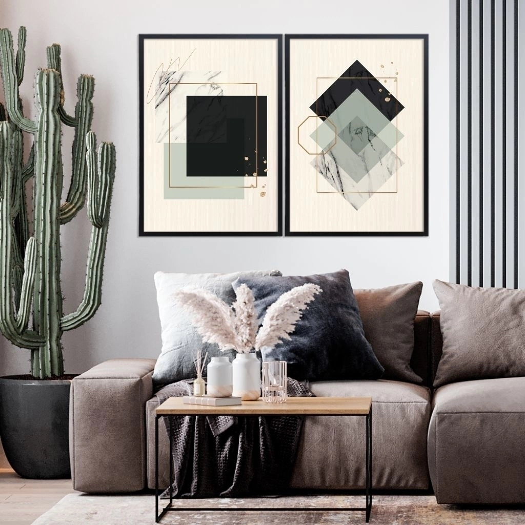 O kit 2 Quadros Geométricos em Pedras é composto pela combinação dos seguintes quadros: