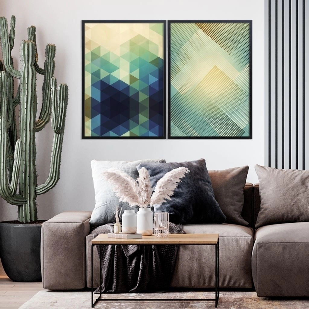 O kit 2 Quadros Geométricos Verde é composto pela combinação dos seguintes quadros: