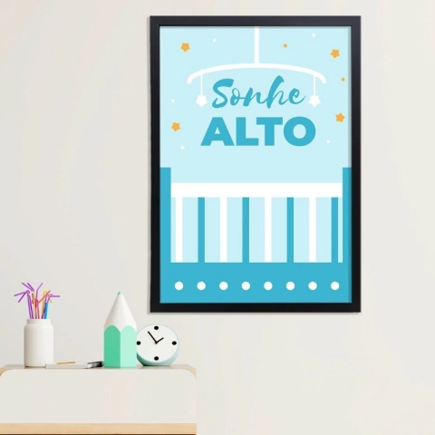 O quadro infantil Berço Sonhe Alto Azul é uma ótima opção para trazer, além de muita beleza, todo o aconchego e carinho que os nossos pequenos merecem.
