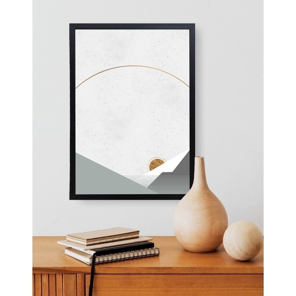Quadro Geométrico Nascer do Sol retrata o sol que nasce sobre as colinas através de figuras geométricas, trazendo assim sofisticação ao ambiente.