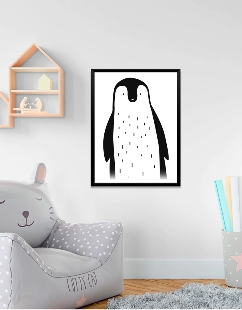 O quadro Pinguim Preto e Branco é uma opção de quadro infantil que pode ser combinado com outros bichinhos como Girafinha, Ursinho Polar, Zebrinha, Pandinha.